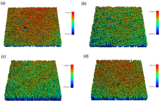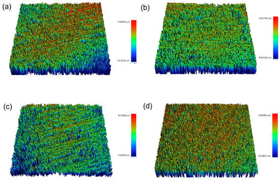 Initial surface roughness readings of the ceramic samples were detected using a non-contact optical profilometer (Contour Gt-K 3D optical profiler; Bruker Nano GmbH, Berlin, Germany). The Ra of each sample was performed by measuring three readings at different locations, where the speed was 0.5 mm/s and the cutoff was adjusted at 0.8 mm [31,34]. Then, the average of the three readings was calculated.