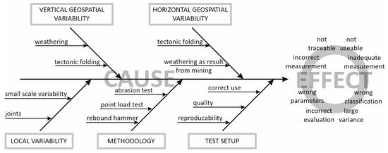 - Small scale variability: variation in the rock in the small range as a result of the different (micro)structural conditions: dividing planes (e.g., joints) and the resulting inherent uncertainties.