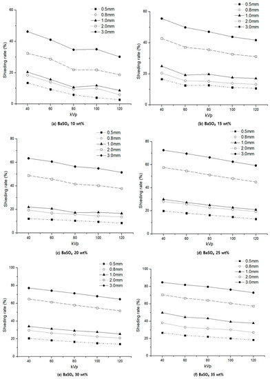 Figure 5. Comparison of shielding rate by wt% by thickness (barium sulfate).