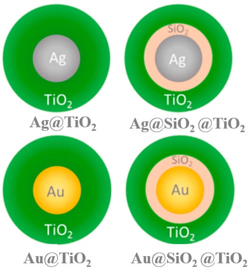 - Cushing, S.K.; Li, J.; Bright, J.; Yost, B.T.; Zheng, P.; Bristow, A.D.; Wu, N. Controlling plasmon-induced resonance energy transfer and hot electron injection processes in Metal@ TiO2 core–shell nanoparticles. J. Phys. Chem. C 2015, 119, 16239–16244. [Google Scholar] [CrossRef]