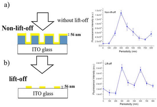 - Chang, Y.-C.; Huang, B.-H.; Lin, T.-H. Surface-Enhanced Raman Scattering and Fluorescence on Gold Nanogratings. Nanomaterials 2020, 10, 776. [Google Scholar] [CrossRef] [PubMed]
