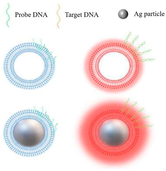 - Lu, L.; Qian, Y.; Wang, L.; Ma, K.; Zhang, Y. Metal-enhanced fluorescence-based core–shell Ag@ SiO2 nanoflares for affinity biosensing via target-induced structure switching of aptamer. ACS Appl. Mater. Interfaces 2014, 6, 1944–1950. [Google Scholar] [CrossRef]