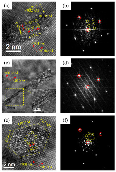 - Ding, L.P.; Jia, Z.H.; Weng, Y.Y.; Liu, Y.; Wu, S.; Liu, Q. The morphology and orientation relationship variations of Q′ phase in Al-Mg-Si-Cu alloy. Mater. Charact. 2016, 118, 279–283. [Google Scholar] [CrossRef]