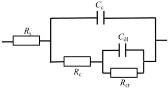 The equivalent circuit was shown in Figure 7. It can be seen that Cdl (double layer capacitance) and Cc (ion adsorption double layer capacitance on the electrode surface) increased, and that both Rct (charge transfer resistance) and Rc (ion adsorption double layer resistance) decreased, concluding that the TC4 alloy has poor corrosion resistance [22].