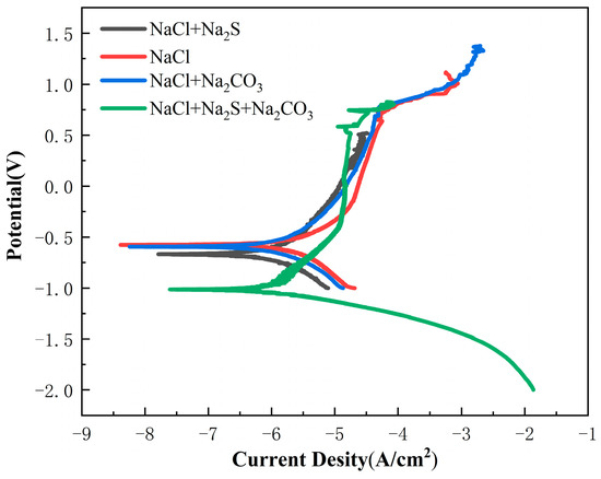 The corrosive medium was 35 g/L NaCl, 35 g/L NaCl + 1 g/L Na2CO3, 35 g/L NaCl + 1 g/L Na2S, and 35 g/L NaCl + 1 g/L Na2CO3 + 1 g/L Na2S, respectively, which were all chemically pure agents.