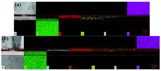 Cross-sectional energy dispersive X-ray spectroscopy (EDX) distributions without and with TiOx layer: (a) In the absence of TiOx, there is observable penetration of O, Rb, and F, which results in degraded passivation quality. (b) There is no elemental penetration in the condition of the TiOx interlayer [].
