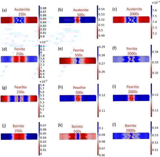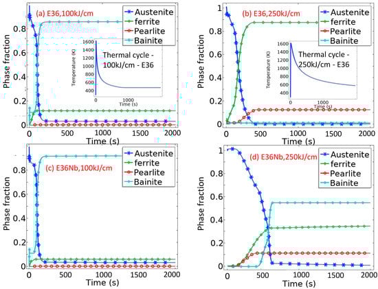 5.1. Predicted Phase Evolution of E36 and E36Nb with High Heat Inputs Using Parameterized Leblond–Devaux Equation
