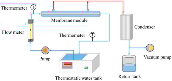 MD can be classified into four modes, based on how the vapor pressure gradient is formed: direct contact membrane distillation (DCMD), air gap membrane distillation (AGMD), sweeping gas membrane distillation (SGMD), and vacuum membrane distillation (VMD) [11]. In accordance with their corresponding advantages and the properties of the feed liquid, the most appropriate MD mode is chosen for separation. Among these modes, VMD will increase the risk of pore wetting, which is significant for membrane performance [12]. Moreover, because of the higher energy requirements, VMD is more expensive energetically, especially when the operating temperature is over 75 °C [13]. Nevertheless, compared to other modes, the advantages of lower heat and mass transfer resistance as well as the higher flux and rejection performance of VMD make it widely studied.