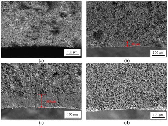 Cross-sectional SEM images of the four different membranes. (a) M1; (b) M2; (c) M3; (d) M4.