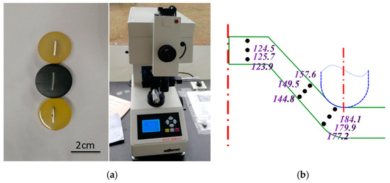The microhardness test result of circular truncated cone after SPIF of the perforated TA1 sheet. (a) Microhardness test samples and equipment. (b) Microhardness distribution in workpiece cross-section of perforated TA1 sheet (HV).