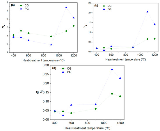 The loss tangent was generally higher for the samples prepared via the PG method and increased with the increase in the treatment temperature. However, both methods generated samples with tanΔ smaller than one.