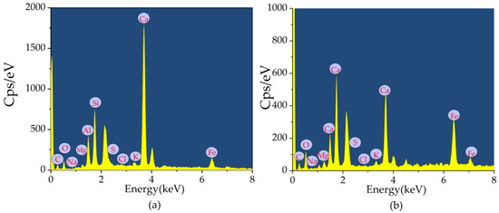 EDS patterns of Figure 9a,b: (a) Aft; (b) C-S-H.
