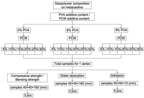 The test plan for samples of the hardened geopolymer mixture is shown in Figure 3.