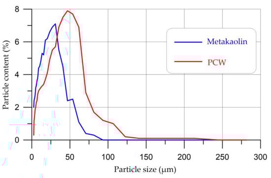 An analysis of the particle sizes of metakaolin and PCW is presented in Figure 6.