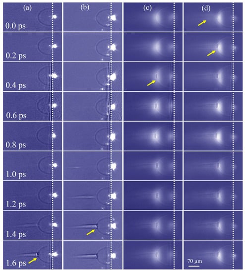 - Wu, Z.; Zhu, X.; Zhang, N. Time-resolved shadowgraphic study of femtosecond laser ablation of aluminum under different ambient air pressures. J. Appl. Phys. 2011, 109, 053113. [Google Scholar]