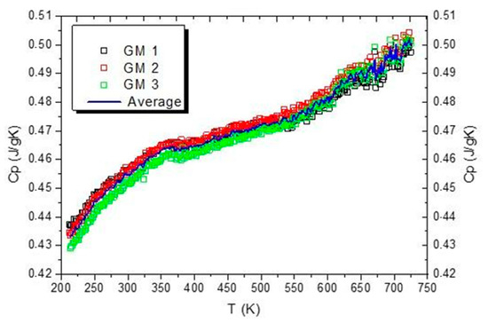Specific heat vs. temperature curves obtained for three samples of Gum Metal denoted by GM1, GM2, and GM3 with an averaged curve are presented in Figure 6.