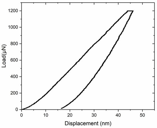 The maximum applied load was 1200 μN, with a 240 μN/s loading rate, and the maximum load was held for 5 s. The load–displacement curve of Cu6(Sn,In)5 is shown in Figure 13. The Young’s modulus and hardness were averaged from the results of five different points. The measured Young’s modulus and hardness are listed in Table 3 alongside those reported for pure Cu6Sn5 [30]. As shown in Table 3, both the Young’s modulus and hardness of Cu6(Sn,In)5 are similar to those of pure Cu6Sn5.