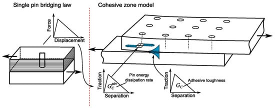 - The bridging force exerted by micro pins can be modelled by the nonlinear spring elements and the cohesive interface elements. Bridging laws governing these pin models can be obtained either by testing single-pin specimens or using the unit-cell models.