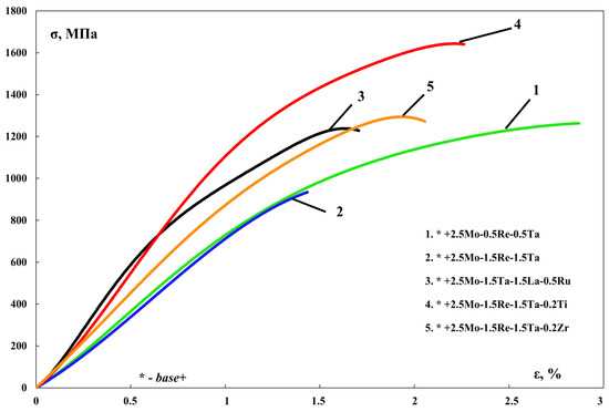 - Phases containing ruthenium and titanium, which reduce the content of gas impurities in the base+ 2.5Mo-1.5Ta-1.5La-0.5Ru alloy to the value ∑O,N = 0.0145 wt.% and the base+2.5Mo-1.5Re-1.5Ta-0.2Ti alloy to the value ∑O,N = 0.0223 wt.%, were identified by TEM.