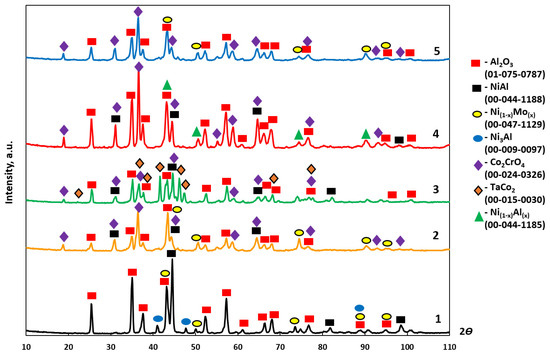 - Sanin, V.V.; Kaplansky, Y.Y.; Aheiev, M.I.; Levashov, E.A.; Petrzhik, M.I.; Bychkova, M.Y.; Samokhin, A.V.; Fadeev, A.A.; Sanin, V.N. Structure and Properties of Heat-Resistant Alloys NiAl–Cr–Co–X (X = La, Mo, Zr, Ta, Re) and Fabrication of Powders for Additive Manufacturing. Materials 2021, 14, 3144. [Google Scholar] [CrossRef]