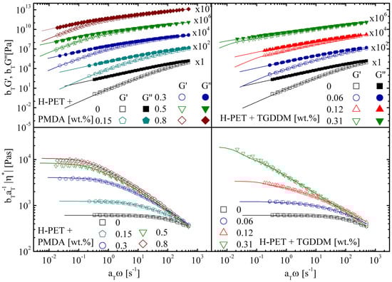 - Xiao, L.; Wang, H.; Qian, Q.; Jiang, X.; Liu, X.; Huang, B.; Chen, Q. Molecular and structural analysis of epoxide-modified recycled poly(ethylene terephthalate) from rheological data. Polym. Eng. Sci. 2012, 52, 2127–2133. [Google Scholar] [CrossRef]