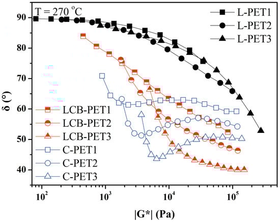 - Dhavalikar, R.; Xanthos, M. Monitoring the evolution of PET branching through chemorheology. Polym. Eng. Sci. 2004, 44, 474–486. [Google Scholar] [CrossRef]