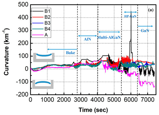 - Dadgar, A.; Hempel, T.; Bläsing, J.; Schulz, O.; Fritze, S.; Christen, J.; Krost, A. Improving GaN-on-silicon properties for GaN device epitaxy. Phys. Status Solidi C 2011, 8, 1503–1508. [Google Scholar] [CrossRef]