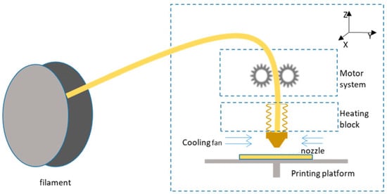 Schematic of FFF-based 3D printer (figure reprinted from [16] under the license CC-BY 4.0).