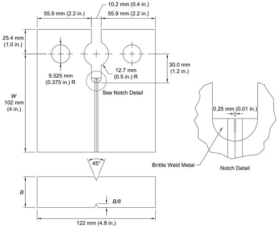 - Corten, H.T.; Sailors, R.H. Relationship between Material Fracture Toughness Using Fracture Mechanics and Transition Temperature Tests; ASTM STP 38825S; ASTM International: West Conshohocken, PA, USA, 1971; pp. 164–191. [Google Scholar]