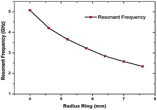 The effect of the resonant frequency of CSRR sensor with rings of various radii.