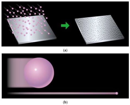 (a) WPC process, (b) Shot peening (left) & WPC (right). Reprinted/adapted with permission from [36]. 2023, FUJI KIHAN CO.,LTD [37].
