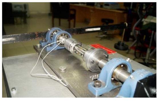 In this research project, a specially designed torque tube was used to measure the valve train’s friction. The torque tube was conceived in a way that it could be coupled with camshaft without any modification. For this purpose, special flange adopters were designed and manufactured. With the help of these adopters, the torque tube was attached to the exhaust camshaft. High-resistance, two-element 90° torque gauges were positioned on the torque tube at opposite sides so that the torsion and consequently the drive torque could be evaluated. The strain gauges were attached in a full bridge circuit configuration (Figure 5) so that the effect of temperature/thermal drift on the output electrical signal could be reduced. Michigan Scientific B6-2 slip ring assembly was used to handle strain gauge bridge and maintain proper drive arrangements, as shown in Figure 6.