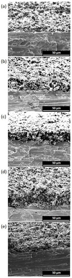 Even surfaces and good contacts with the current collectors could be observed for all electrodes. As the thickness increased, some thick electrodes showed minor unevenness on the surface due to the hand-coating process. Nevertheless, the structural integrity of the electrodes was maintained with the increase in thickness. A compact layering of carbon could also be seen for all spray-coated electrodes.