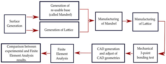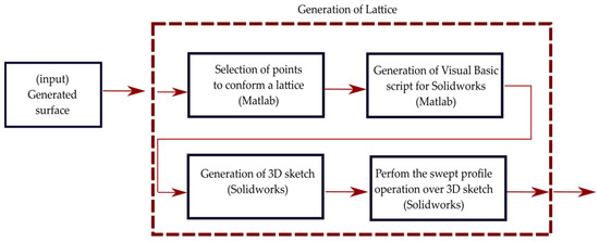 The generation, design, and manufacturing of curved lattice samples are achieved through the steps detailed in the following subsections and illustrated in Figure 2.