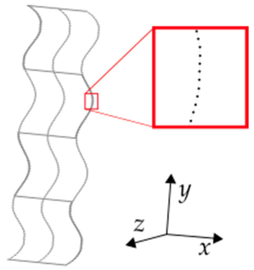where and are the control points of the surface. The output of the MATLAB® script is a Bézier surface discretized in a cloud of points based on the control points that have been introduced. Since this cloud of points is used in several sections of this work, it is labeled as CLOUD_A. Specifically, here the external geometry of all samples consists of a rectangle of 120 × 30 mm in the XY-plane and variations in the Z-axis of ±2.5 mm.