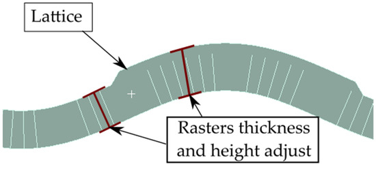 The use of CLFFF in the fabrication of lattice structures is still limited, as most of the works that have evaluated CLFFF’s mechanical properties were focused on quasi-solid samples. Non-planar lattices fabricated via CLFFF have been reported by McCaw and Cuan-Urquizo [6,27], where sinusoid-based parameterized lattices were printed on Bézier surface mandrels and their mechanical properties experimentally evaluated. In both CLFFF and FFF, a detailed characterization of the raster arrangement’s influence on the overall stiffness and strength of the samples is still needed. This is relevant to the production of structures with tailored mechanical properties, as two different topologies made of the same volume fraction(ratio of the volume of material used over the volume they occupied) could result in different effective properties.