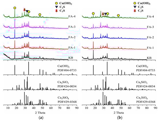 XRD analysis of hydration products for samples cured 28 d (a) and 210 d (b).