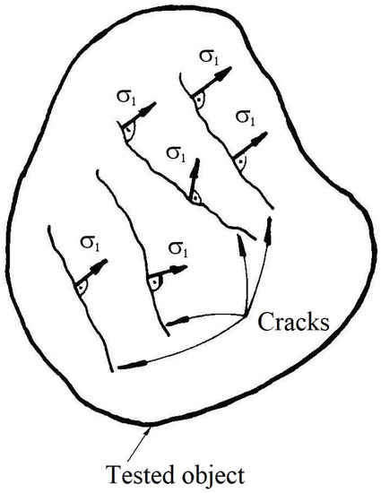 During a systematic loading of the object, one will monitor (e.g., using a high-resolution CCD camera) the evolution in time of the cracks as well as their propagation directions. So, it became possible to evaluate both the stress concentration loci and their magnitudes. In Figure 7, the principle of the method is presented, where one can observe how the main stresses are disposed perpendicular to the cracks; of course, the will settle down along the cracks’ directions.