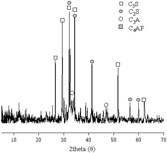 XRD spectrum of Portland cement used in the experiment.
