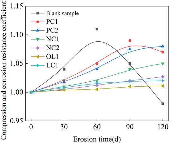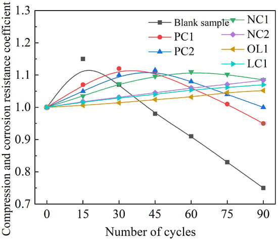 Compressive corrosion resistance coefficient of specimens under dry–wet cycle.