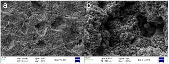 SEM figure on the surface of blank control sample. (a) ×200, (b) ×1000.