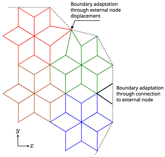 Finally, we note that the 3D triangular-based structure along the honeycomb plan allows for simple solutions to accommodate complex boundaries. Figure 4 shows some simple solutions to accommodate general boundaries through external nodes.