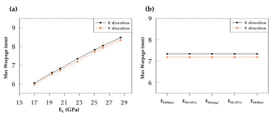 Warpage results of Young’s modulus based on modulating (a) EL and (b) EH.