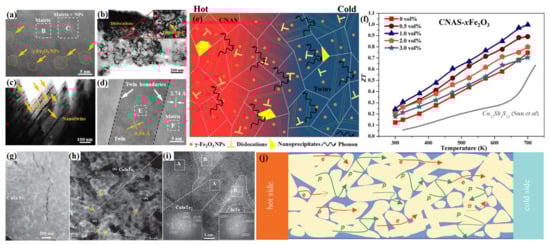 - Hu, H.H.; Sun, F.H.; Dong, J.F.; Zhuang, H.L.; Cai, B.; Pei, J.; Li, J.F. Nanostructure Engineering and Performance Enhancement in Fe2O3-Dispersed Cu12Sb4S13 Thermoelectric Composites with Earth-Abundant Elements. ACS Appl. Mater. Interfaces 2020, 12, 17852–17860. [Google Scholar] [CrossRef] [PubMed]