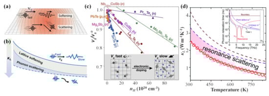 - Slade, T.J.; Anand, S.; Wood, M.; Male, J.P.; Imasato, K.; Cheikh, D.; Al Malki, M.M.; Agne, M.T.; Griffith, K.J.; Bux, S.K.; et al. Charge-Carrier-Mediated Lattice Softening Contributes to High zT in Thermoelectric Semiconductors. Joule 2021, 5, 1168–1182. [Google Scholar] [CrossRef]