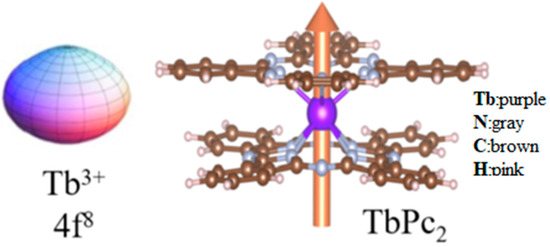 Rare earth Pcs were discovered by Kirin and Moskalev. Notably, double-decker Ln-Pcs could also be achieved at that time [40,41]. The crystal structure data of LnPc2 (Ln = Tb, Dy) are shown in Table 1 [16]. TbPc2 belongs to the same P212121 space group as DyPc2, and the crystal parameters are close in size.