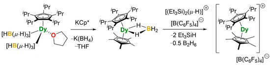 - Guo, F.S.; Day, B.M.; Chen, Y.C.; Tong, M.L.; Mansikkamaki, A.; Layfield, R.A. Magnetic hysteresis up to 80 kelvin in a dysprosium metallocene single-molecule magnet. Science 2018, 362, 1400–1403. [Google Scholar] [CrossRef] [PubMed]