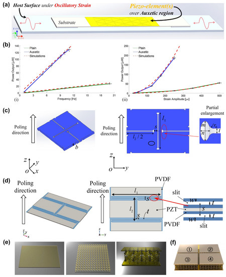 - Ferguson, W.J.G.; Kuang, Y.; Evans, K.E.; Smith, C.W.; Zhu, M. Auxetic structure for increased power output of strain vibration energy harvester. Sens. Actuator A Phys. 2018, 282, 90–96. [Google Scholar] [CrossRef]