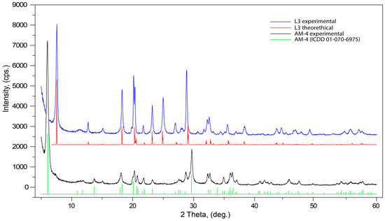 Powder X-ray diffraction patterns of initial AM-4 and L3 phases.