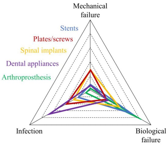 Like orthopedics appliances, trauma devices such as screws, plates, and intramedullary nails are also subjected to intense solicitations, to the point that it is not unusual for surgeons to prefer the more resistant stainless steel over titanium []. Moreover, unlike most components used in arthroplasty, trauma devices are often removed after the healing process has been completed [,], and a perfectly osseointegrated titanium device would prove difficult to remove without damaging the surrounding tissue [,].